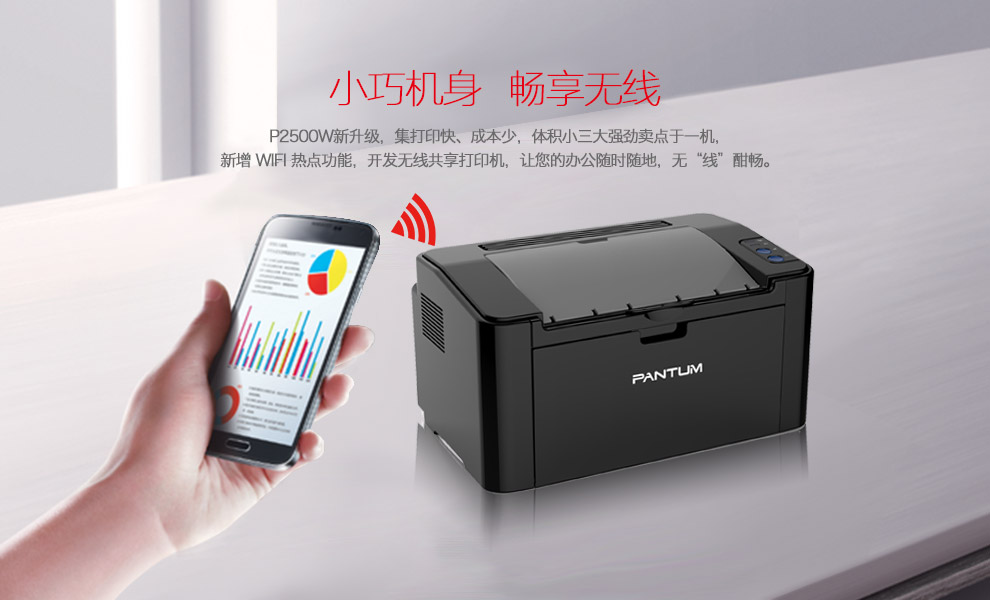 奔图2500W 黑白激光打印机积小巧,WiFi直连打印,易加粉硒鼓设计,乐享打印!