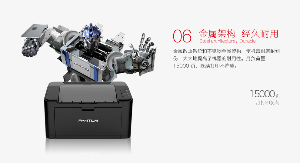 A4幅面,33页/分钟 A5 53张/分钟 1200×600dpi,标配自动双面打印单元,有线网络打印,预热时间<8秒,内存128M,硬存储器16M,月耐负荷能力50000张,高速接口,鼓粉一体,标配250张大容量纸盒和单页优先进纸托盘,一年保修