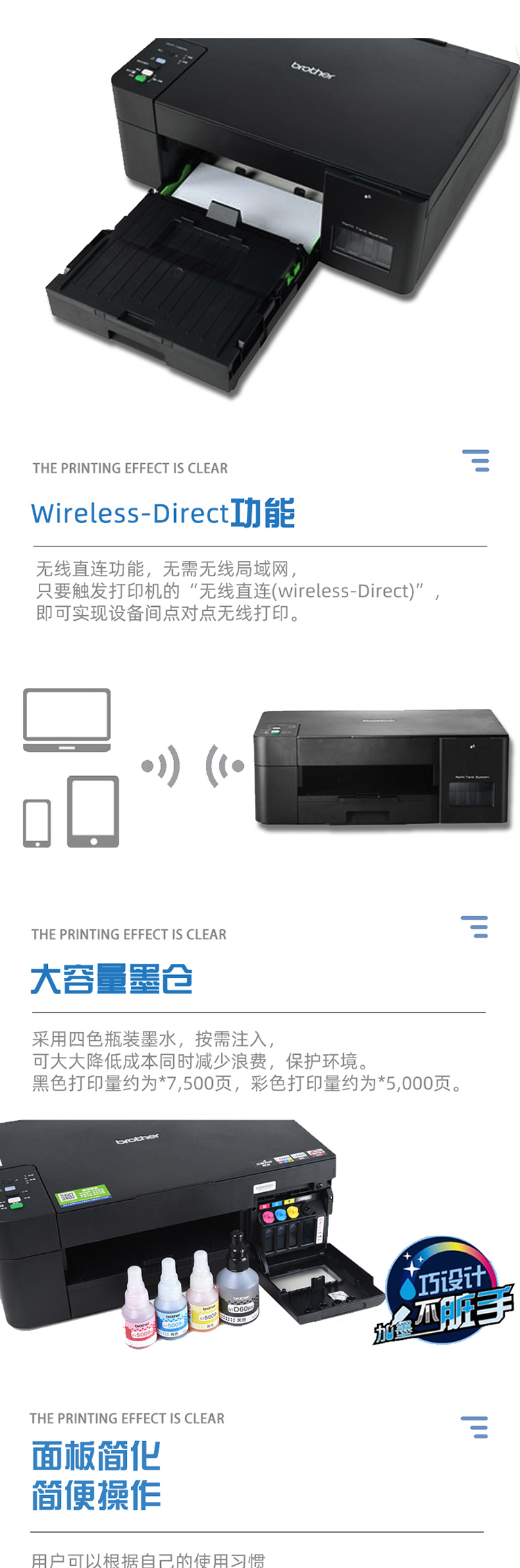 brother兄弟彩色喷墨一体机打印复印扫描无线家用办公DCP-T425W