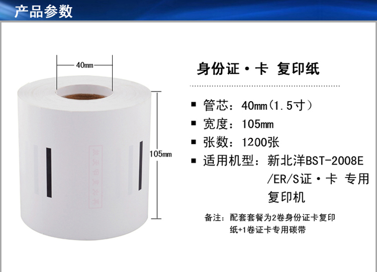 1套专用耗材=2卷身份证复印纸+1卷专用碳带