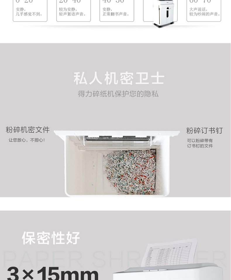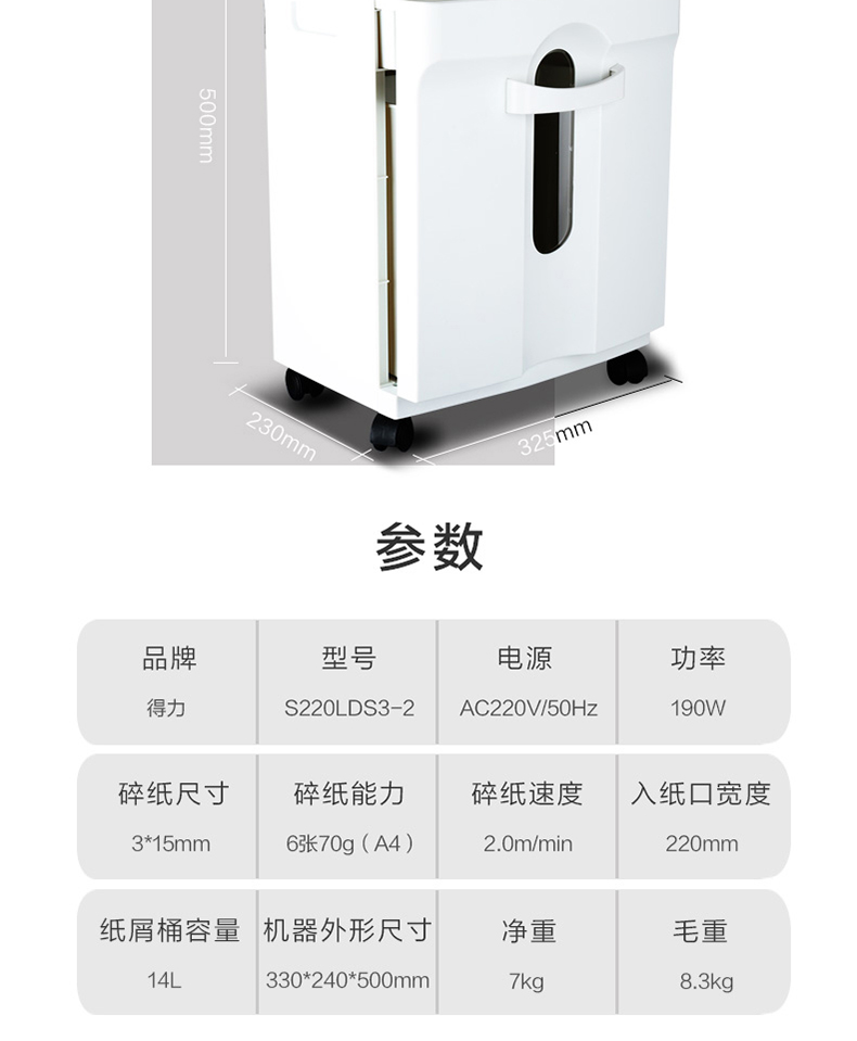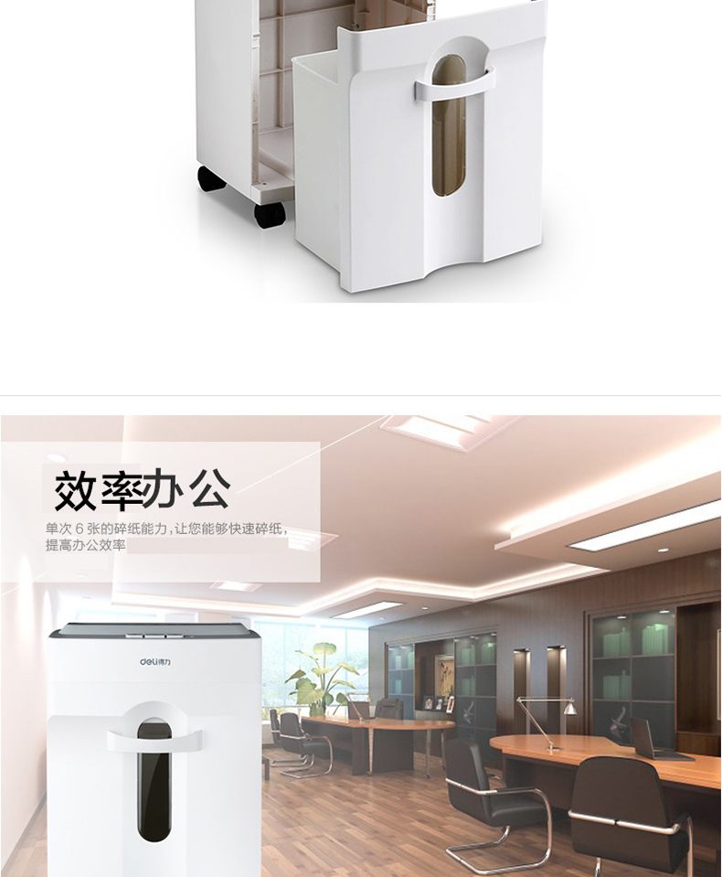 得力(deli)9920碎纸机(白)大容量纸张文件粉碎机 续航5分钟 4级保密/连碎6张/14L