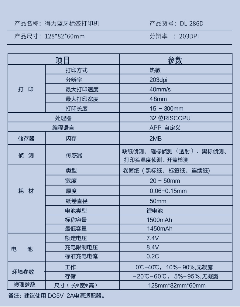 编号:DL-286D 规格:便携热敏标签机 | 品牌:得力