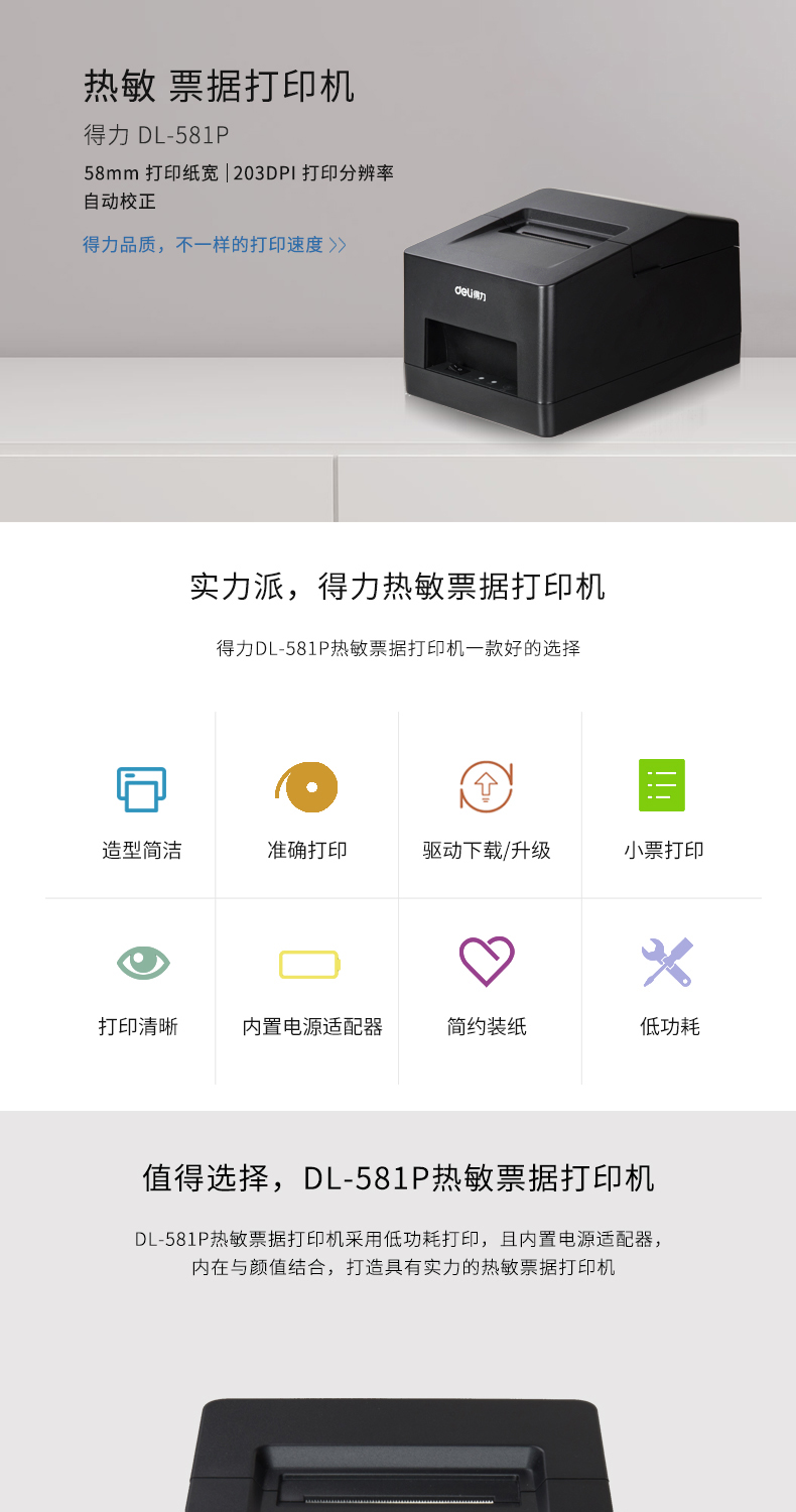 编号:DL-581PS 规格:58票据打印机 | 品牌:得力