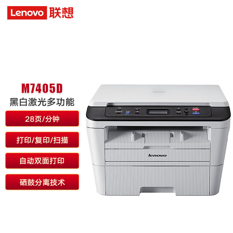联想 M7405D打印机一体机打印复印扫描自动双面打印A4身份证件复印