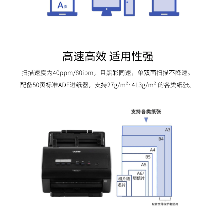 兄弟 ADS-2400N 高速双面扫描仪40页80面支持U盘扫描