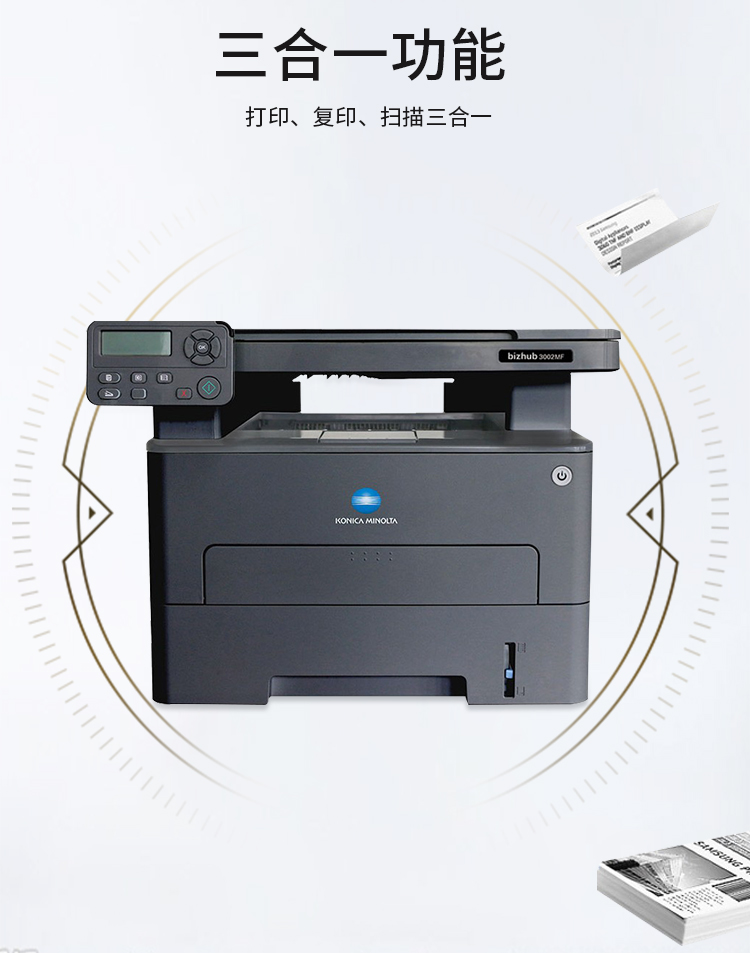 柯尼卡美能达3002MF黑白激光多功能一体机a4打印机复印机手机网络打印彩色扫描家