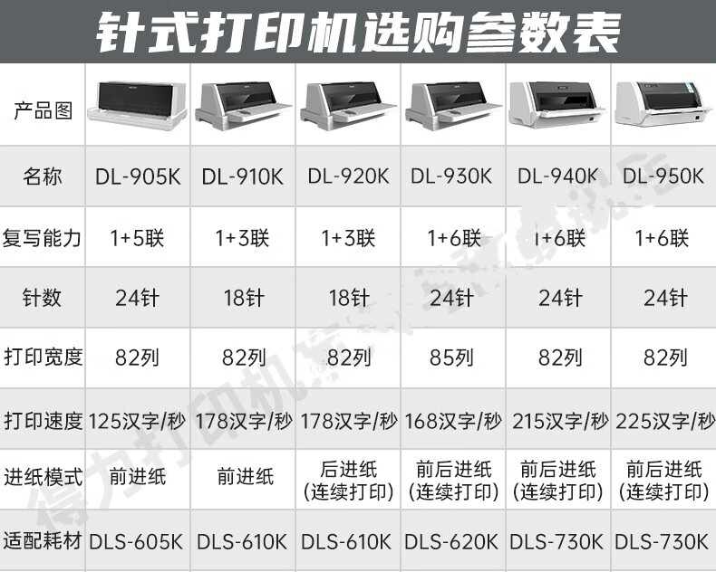 编号:DL-930K 规格:85列24针平推(1+6) | 品牌:得力