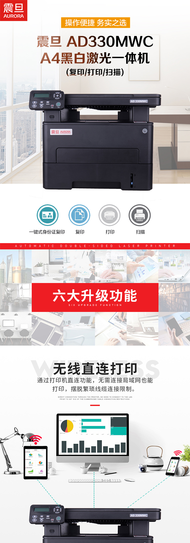 震旦(AURORA)AD330MWC 黑白激光一体机(三合一)