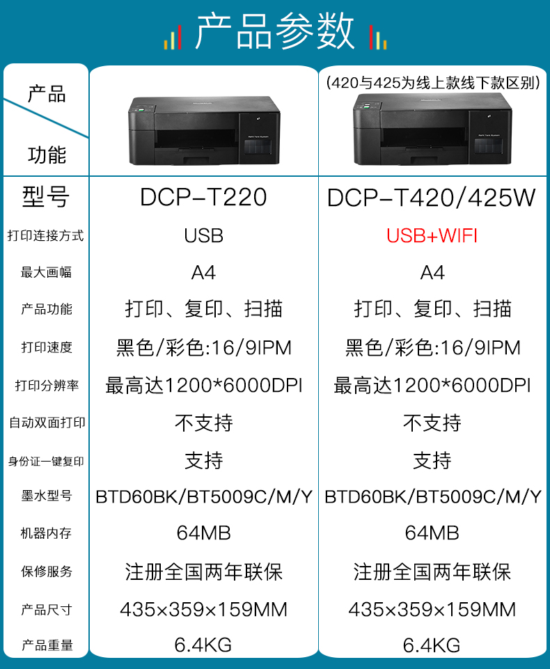✌兄弟打印机DCP-T220家用打印机复印扫描一体机小型学生家庭办公用彩色墨仓式喷