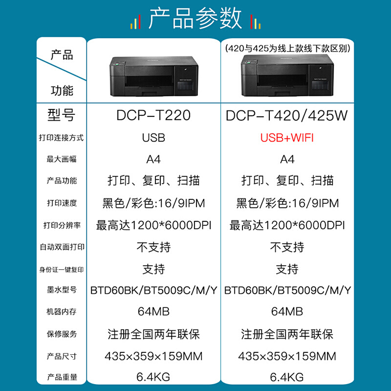兄弟(Brother) DCP-420W墨仓式连供打印机复印扫描无线WiFi文档照片学生作业 一体机