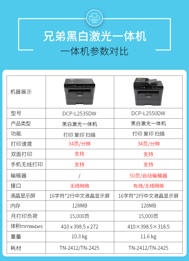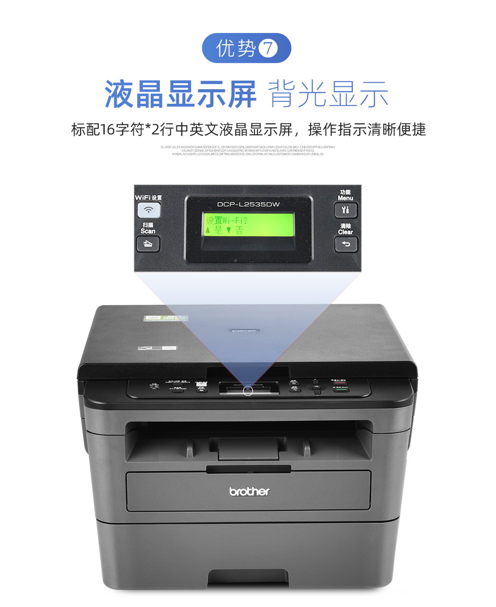 兄弟DCP-L2535DW无线黑白激光一体机复印机扫描机家用办公无线wifi自动双面