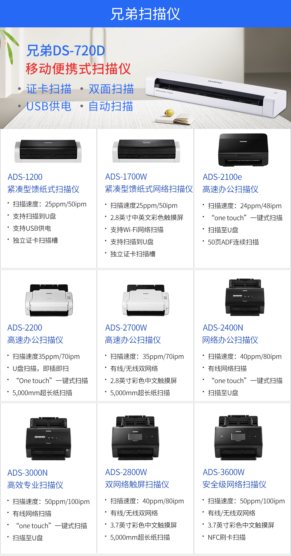 编号:ADS-2700w 规格:A4高速扫描仪 | 品牌:兄弟