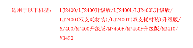 适用机型:LJ2400,LJ2400L,M7400,M7450F 1500页(5%覆盖率)