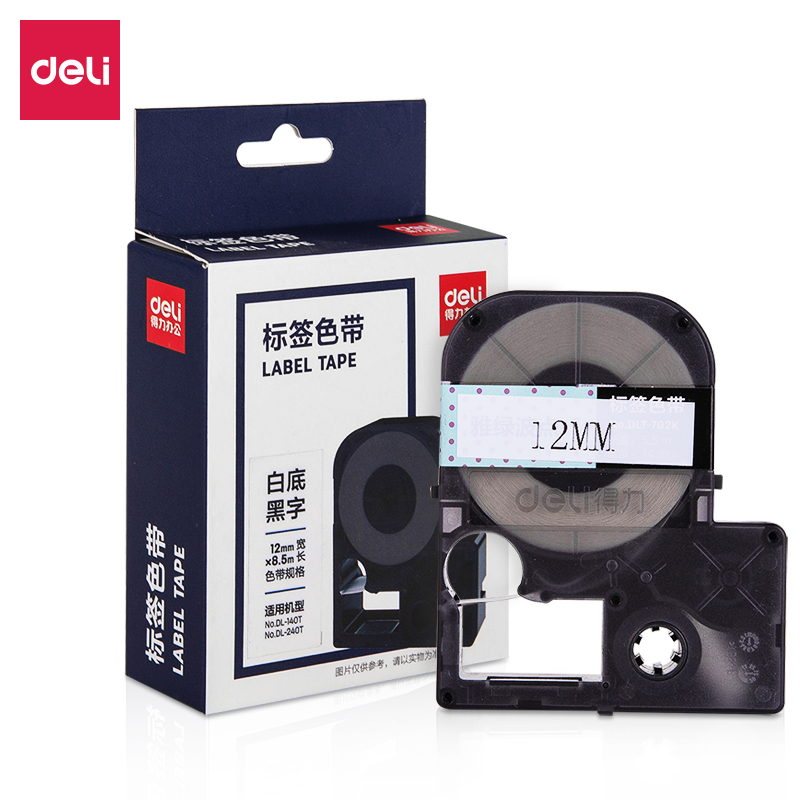 得力标签色带手持式标签打印纸防水耐磨分类标签透明底黑字白底黑字适用于DL-140T