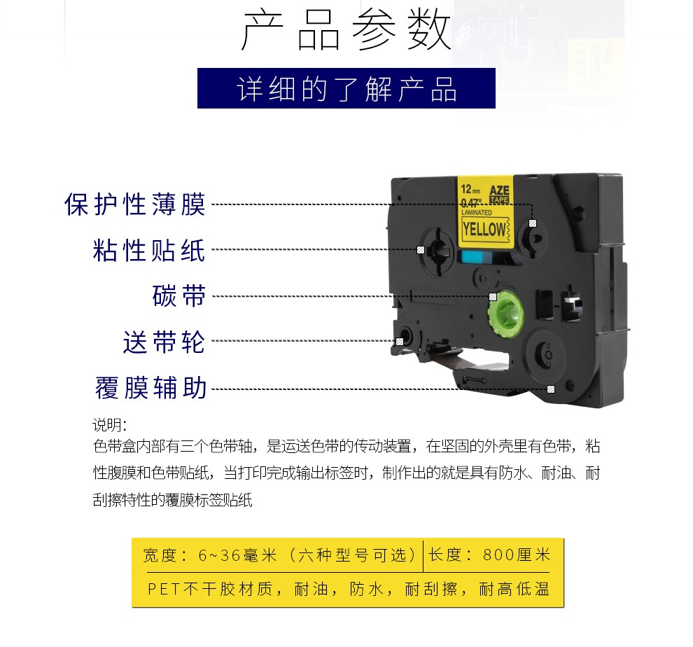 爱墨标签带适用兄弟标签机色带9mm标签打印机色带不干胶标签纸 黄底黑字(强粘)