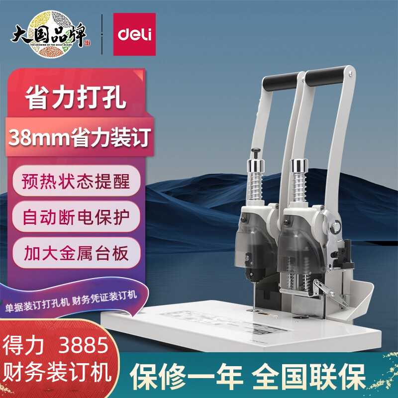 得力(deli)3885 省力型单据打孔机 财务凭证装订机 自动断电保护