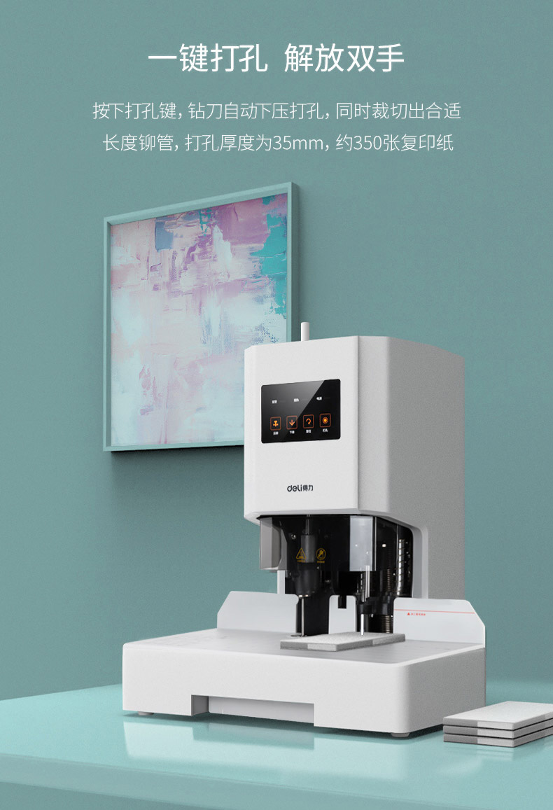 得力14608凭证装订机全自动财务会计档案文件打孔机热熔胶铆管自动打孔语音提示激光定位装订机