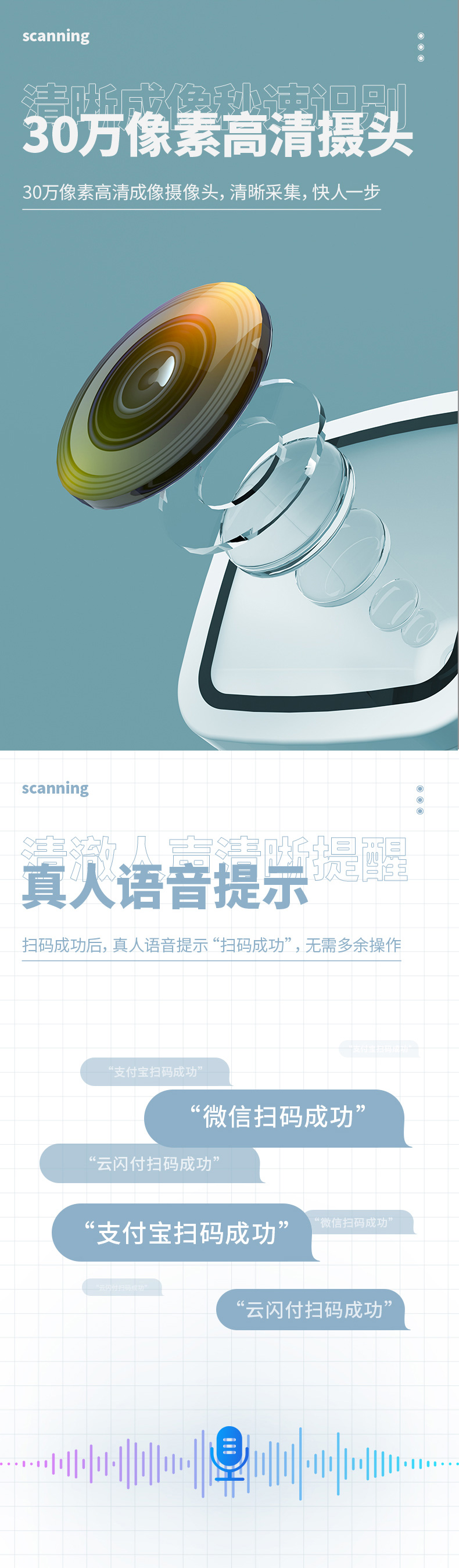 得力14964支付宝微信扫码盒子一维二维码屏幕支付平台商超餐饮收银扫码器医保码收钱盒子扫码枪收钱扫描