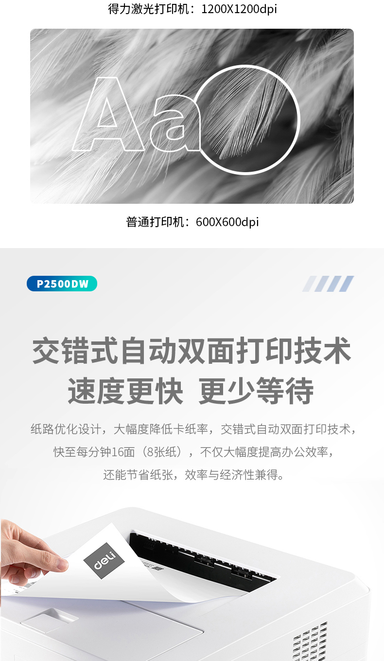 得力激光打印机家用小型黑白激光打印机无线家用办公A4双面打印学生打印机P2500DNW