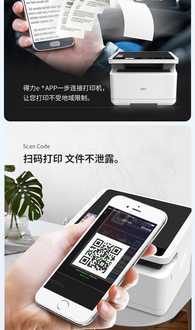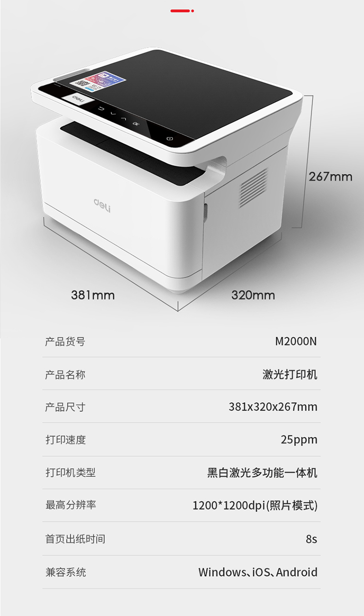 得力(deli)M2000N A4黑白激光多功能一体机 打印复印扫描