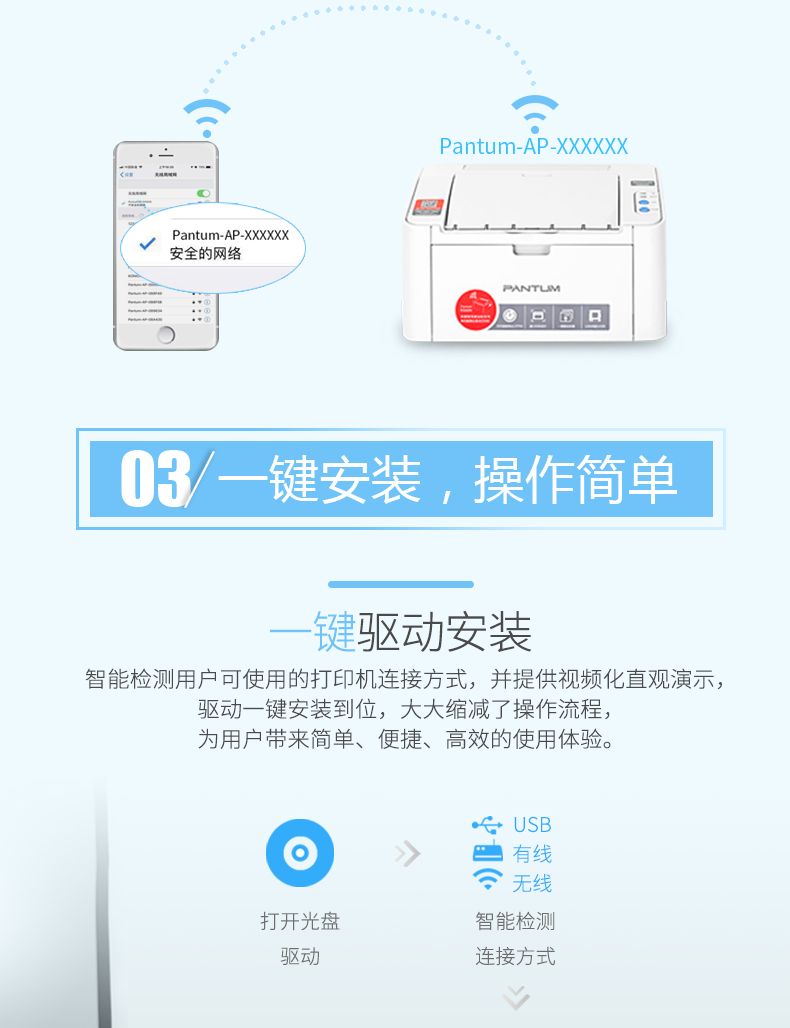 奔图(PANTUM) P2506W USB+WIFI A4黑白激光打印机 高速打印 共享打印