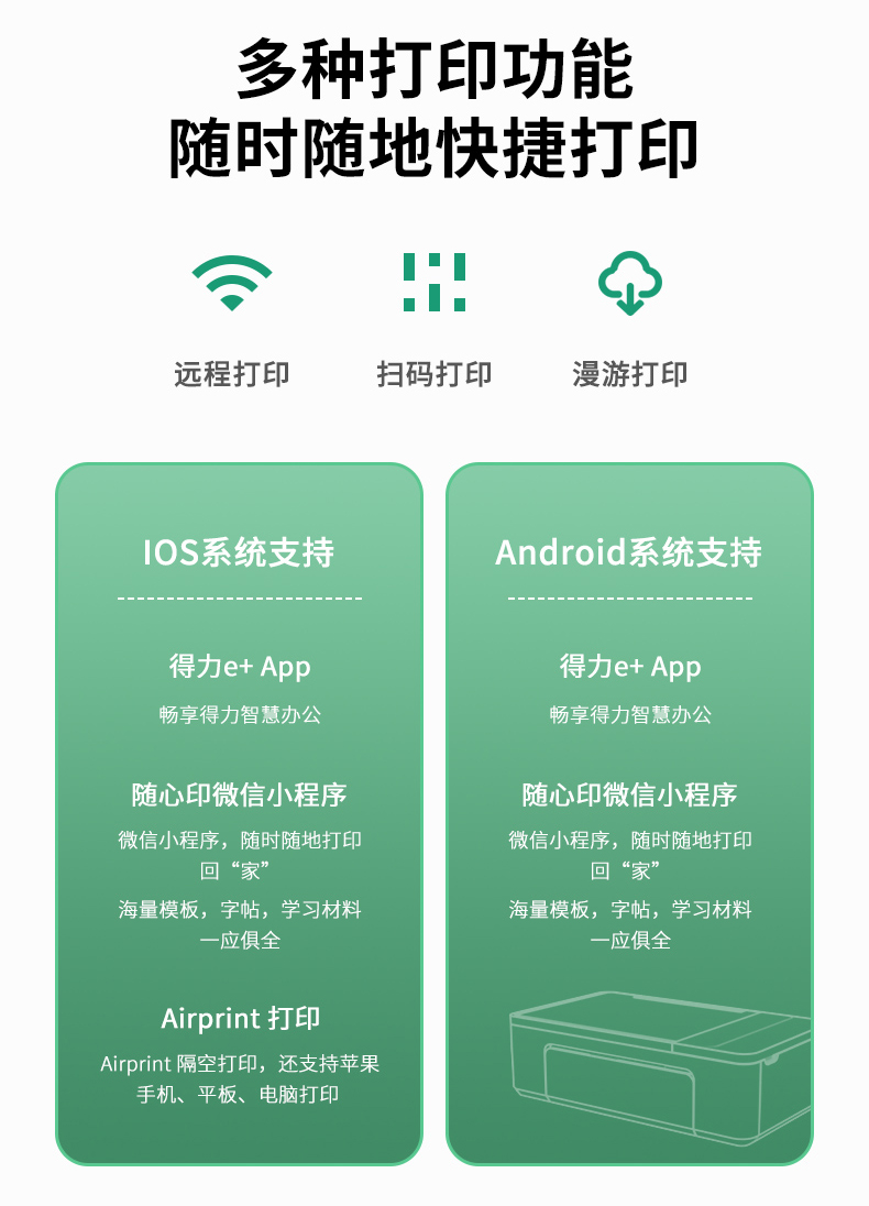 得力L300NW彩色喷墨相片打印机多功能一体机复印多功能a4喷墨照片扫描家用小型手机无线
