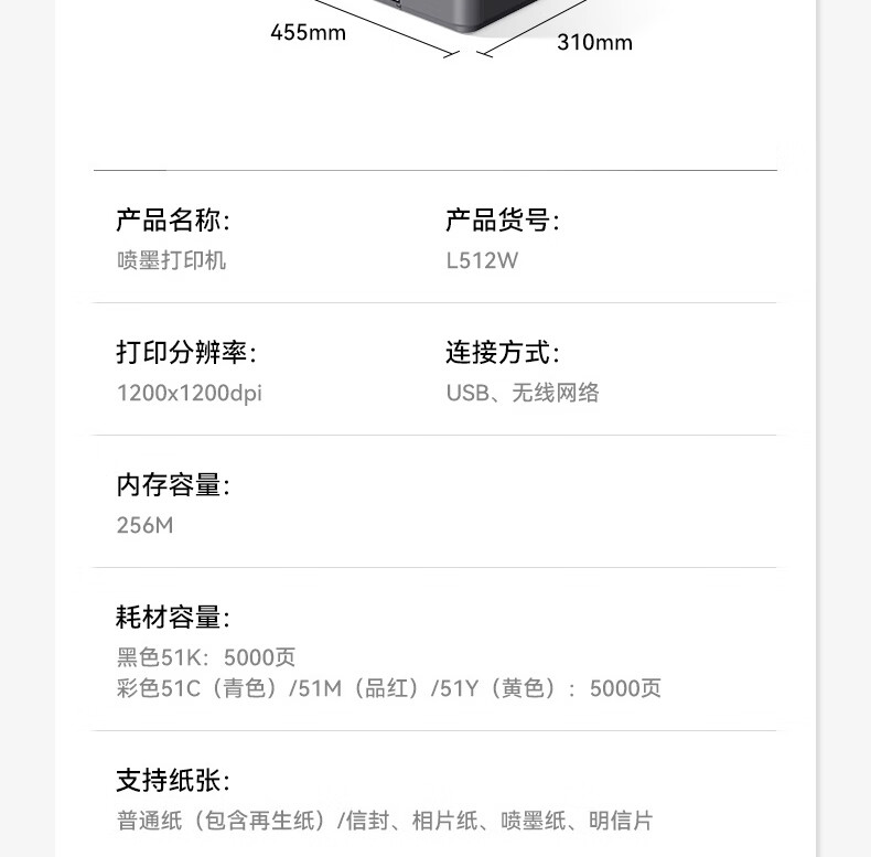 得力 L512W 彩色喷墨多功能墨仓打印机 打印复印扫描/国产自主研发//远程打印/ 黑色(深灰色