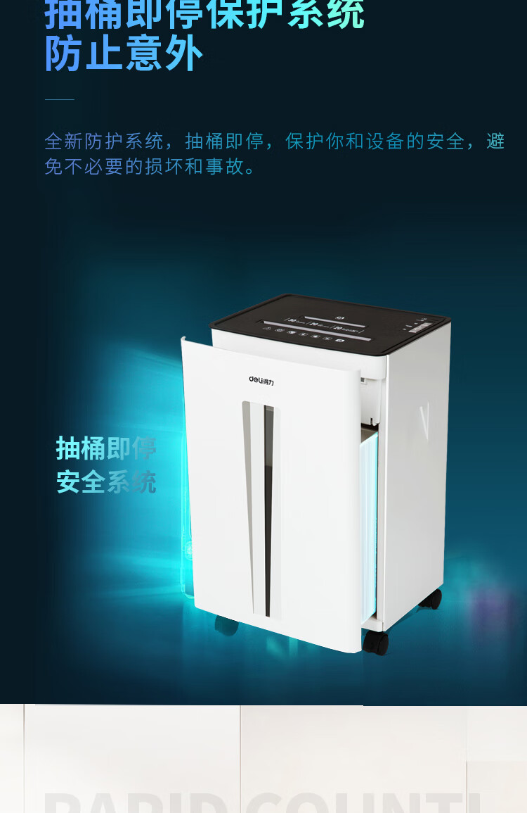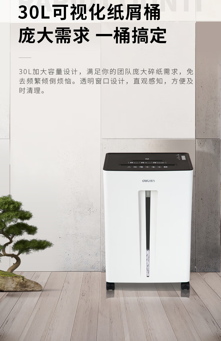 【好品质,选得力】商用大型办公碎纸机,单次碎纸20张,30L大容量纸筒!