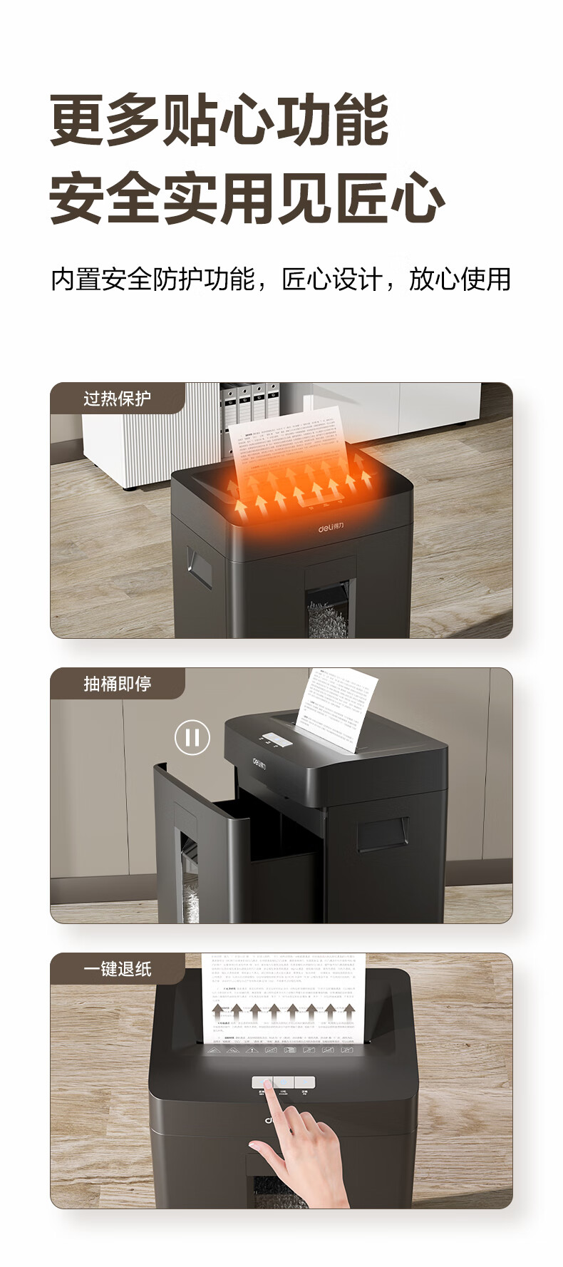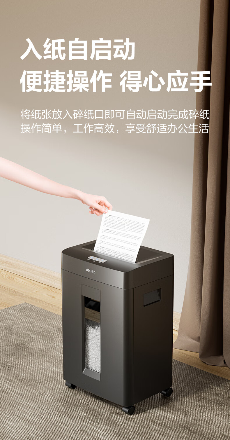 得力碎纸机5级高保密 大型文件粉碎机电动商用办公碎纸机 8张 30分钟 23L大容量 GA666
