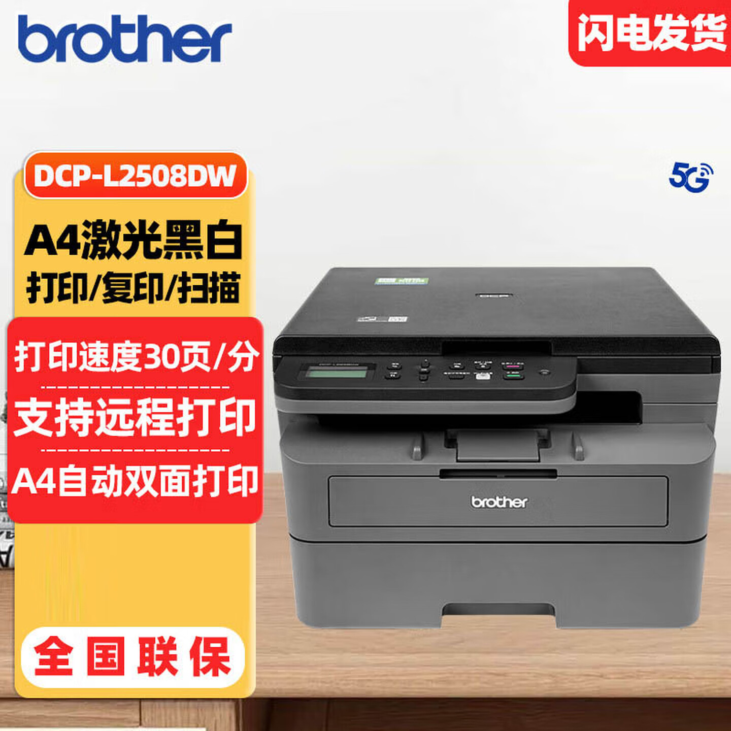 兄弟(brother)DCP-L2508DW黑白激光打印机一体机多功能复印扫描双打印面家用办公三合一
