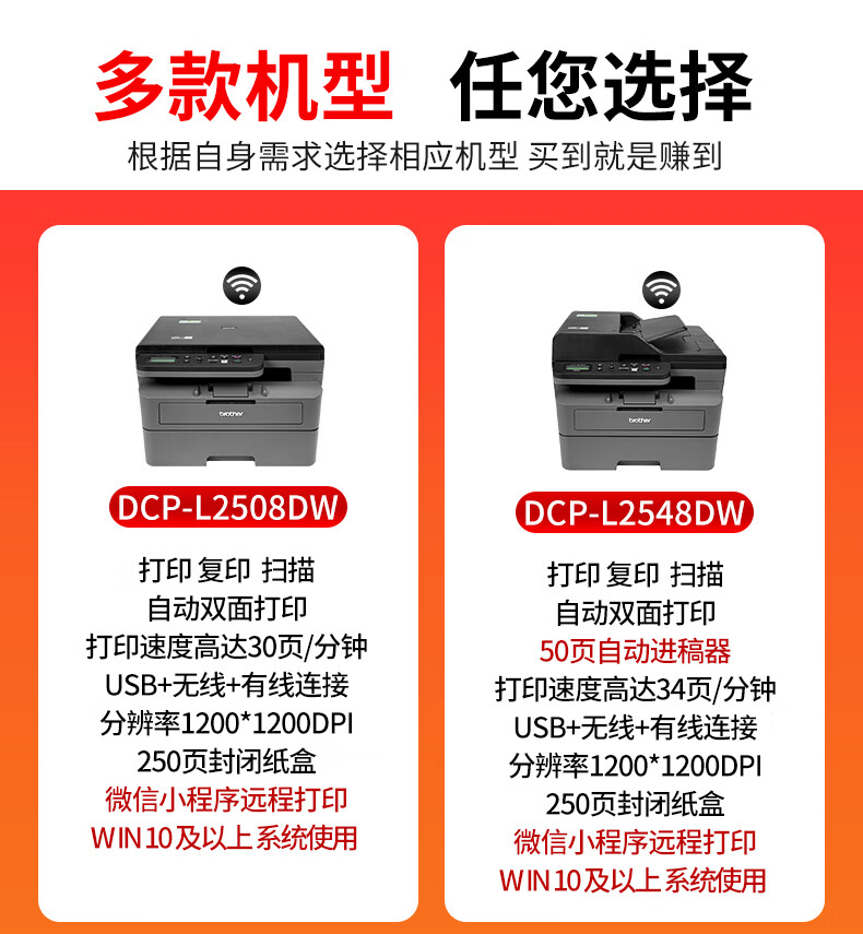 兄弟(brother)DCP-L2508DW黑白激光打印机一体机多功能复印扫描双打印面家用办公三合一作业打印机 L2508DW【双面打印+远程打印】