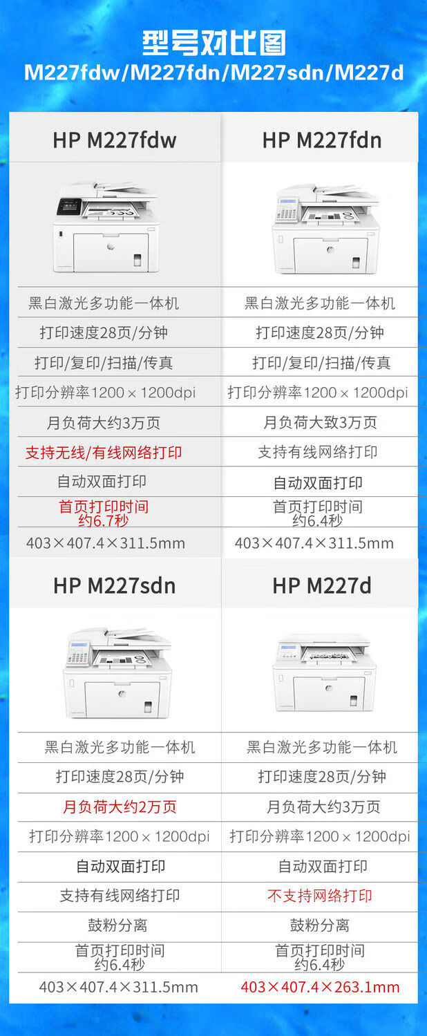 编号:HPM227fdn 规格:A4黑白激光一体机 | 品牌:惠普