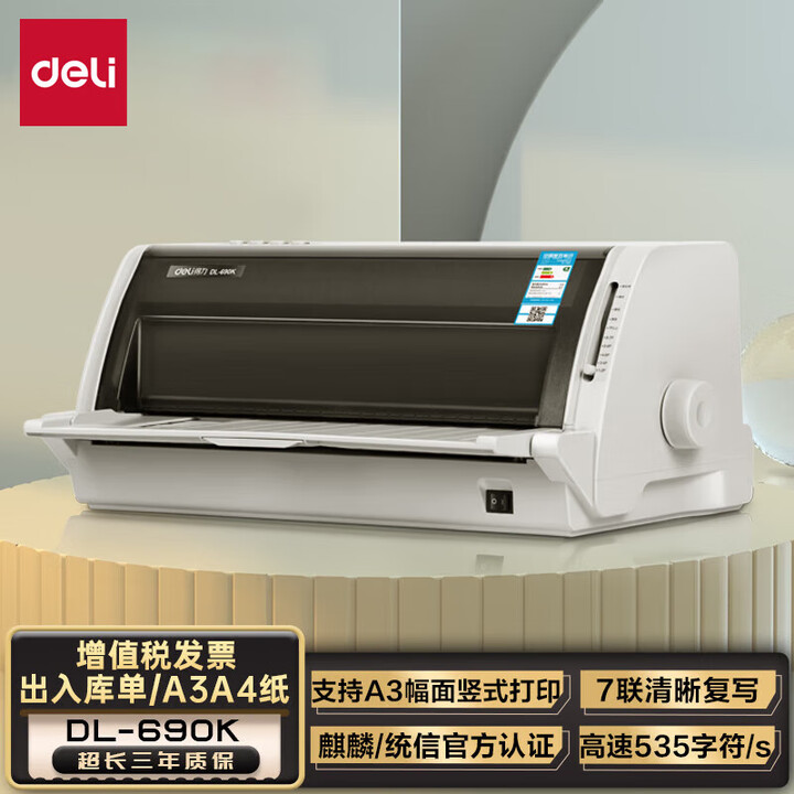 得力(deli)DL-690K针式打印机 发票/单据/快递单打印机(A3纵向110列平推式)