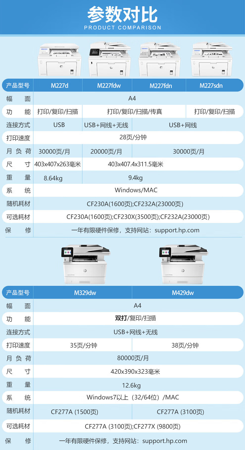 编号:HPM227D 规格:A4黑白激光一体机 | 品牌:惠普