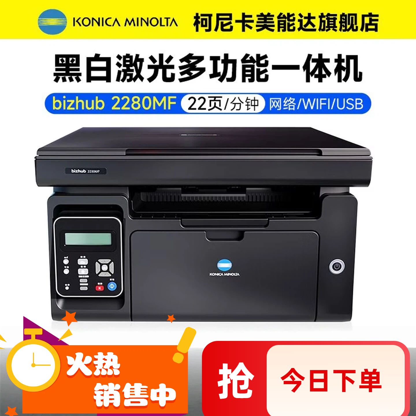 柯尼卡美能达2280MF黑白激光打印机无线wifi多功能一体机小型家用办公打印复印扫描三合一
