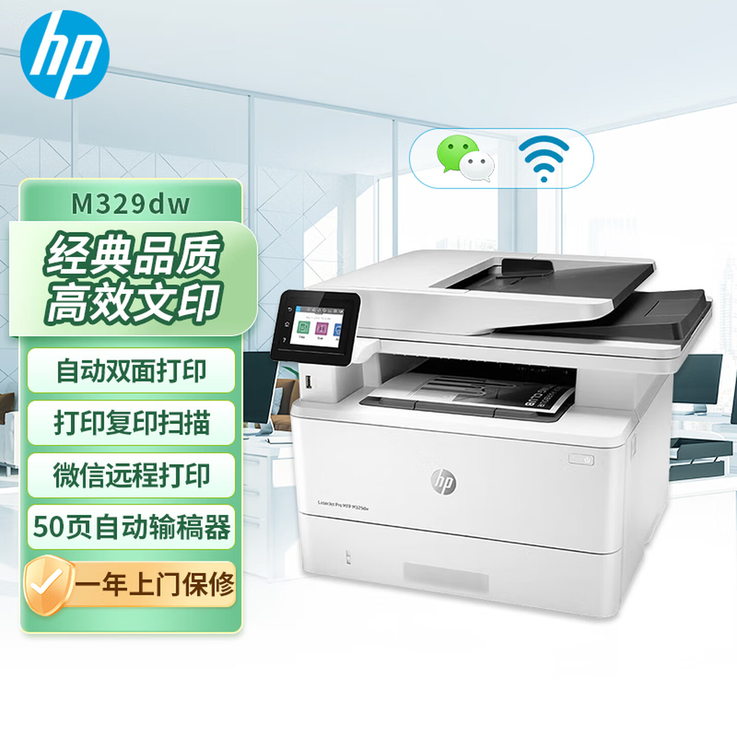 惠普(HP)M329dw激光多功能一体机 商务办公三合一 无线连接打印复印扫描 自动双面打印