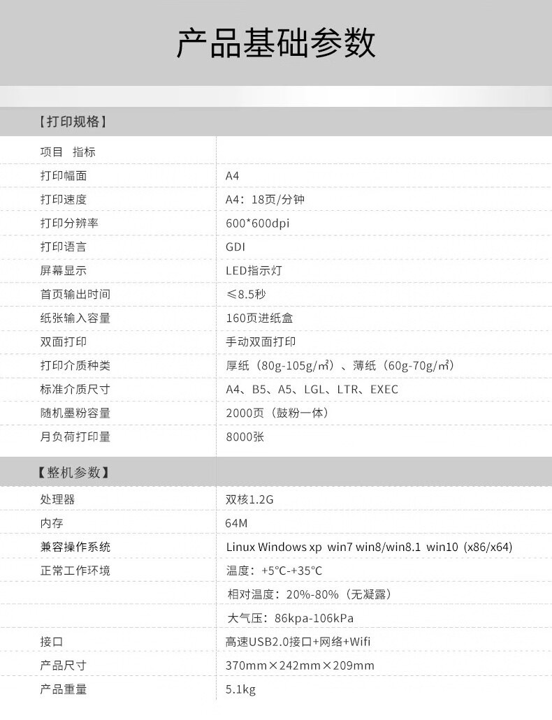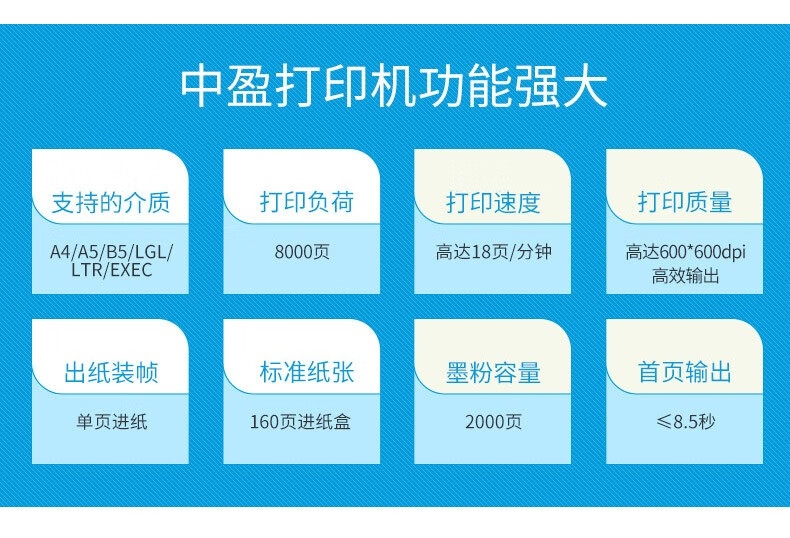 编号:BH005022 规格:A4黑白机光打印机 | 品牌:中盈