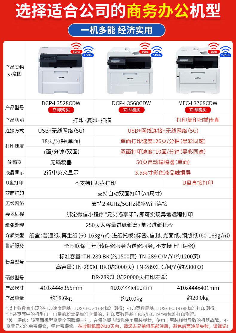 无线彩色激光数码打印一体机复印机扫描多功能一体机A4自动双面有 DCP-L3568CDW 输稿器配置