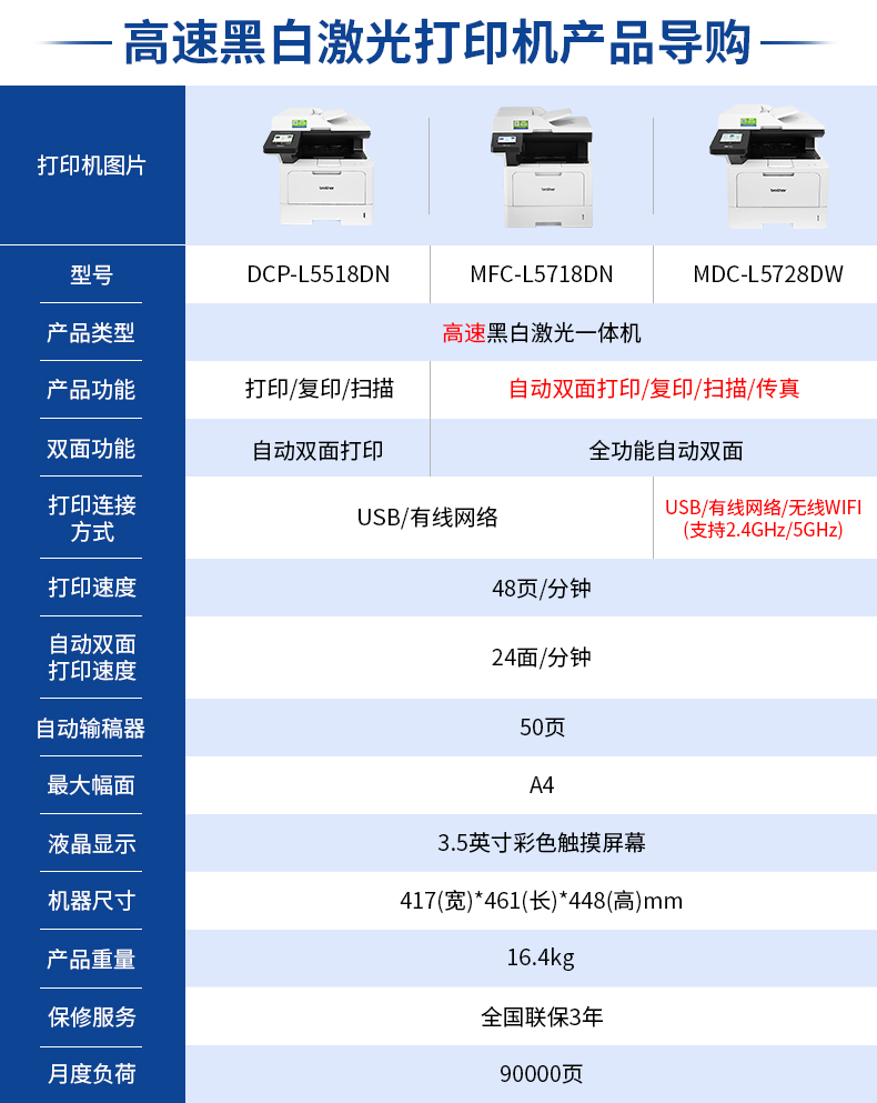 兄弟 DCP-L5518DN黑白激光一体机多功能一体机高速自动双面打印复印扫描商用办公