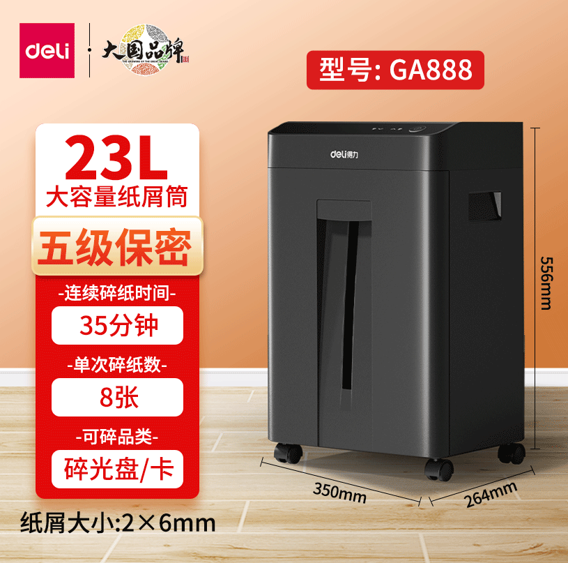 得力碎纸工具商务碎纸机德标5级35分钟连续碎纸8张同碎可碎光盘银行卡 得力GA888商务碎纸机(黑)