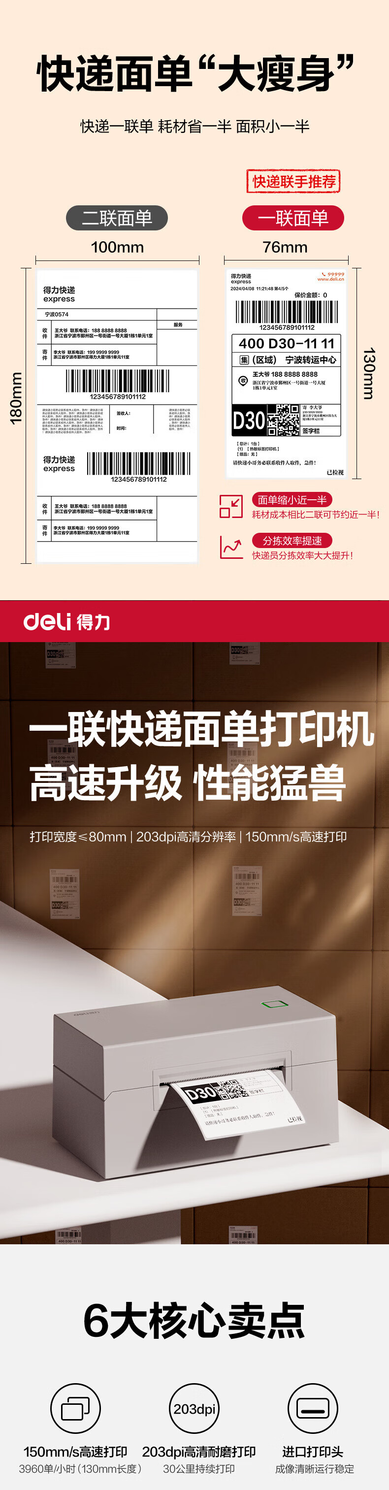 编号:BH005279 规格:快递面单机 | 品牌:得力