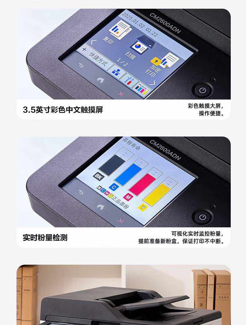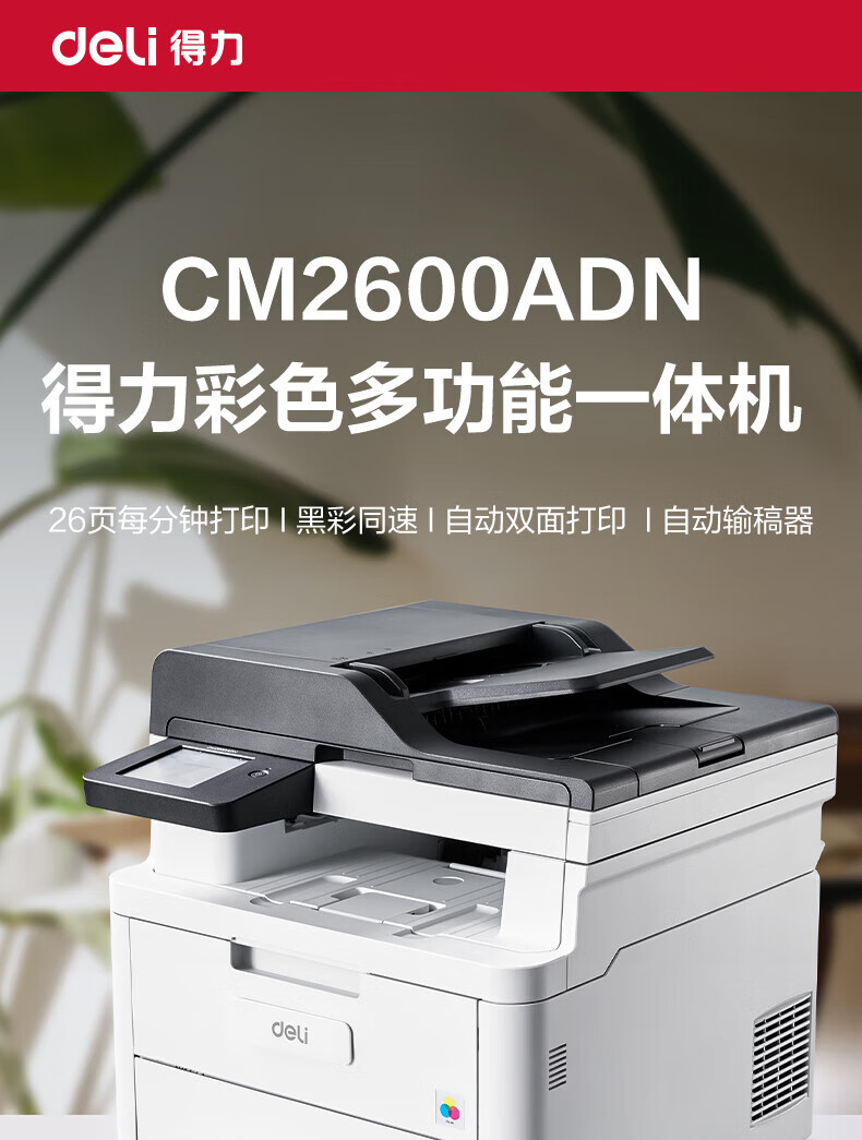 得力(deli)A4国产彩色激光打印机复印扫描一体机家用复印机多功能商用办公 得力CM2600ADN打印复印扫描 标配全新机器含粉盒