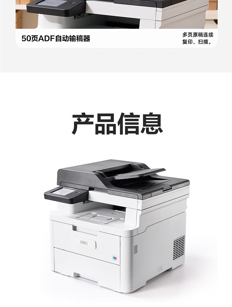 得力(deli)A4国产彩色激光打印机复印扫描一体机家用复印机多功能商用办公 得力CM2600ADN