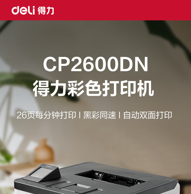 得力CP2600DN适配国产操作系统C26 A4自动双面网络彩色激光打印机