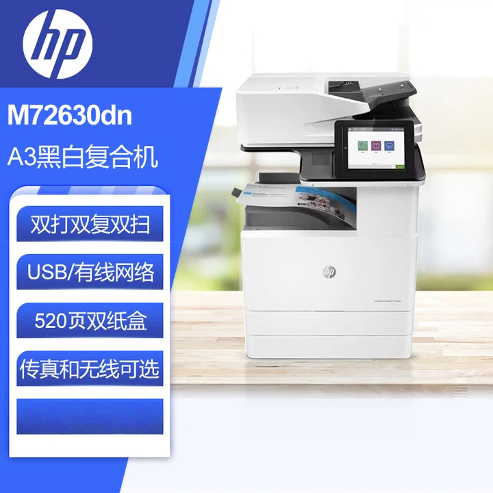 惠普(HP)M72630dn黑白激光A3/A4复合机 自动双面高速有线网络共享复印扫描 (双打双复双