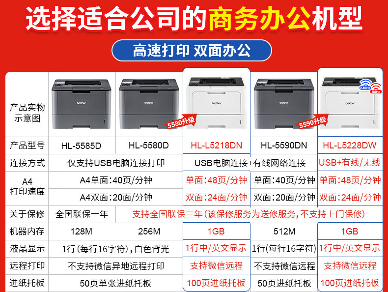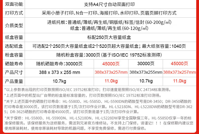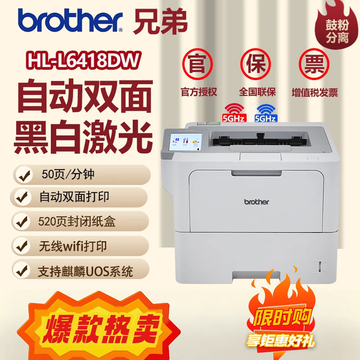 兄弟HL-L6418DW:有线网络+双面+48页/分钟 官方标配(原装主机+1套原装硒鼓粉盒)