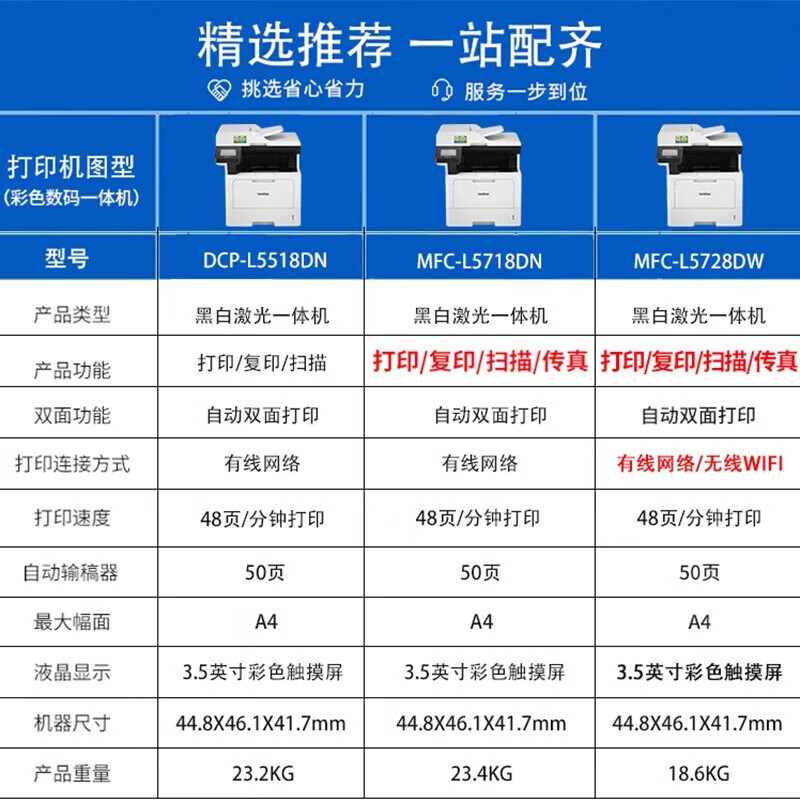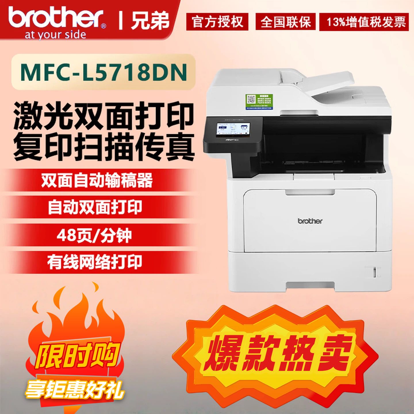 brotherMFC-L5718DN高速黑白激光多功能一体机 打印复印扫描传真 有线网络打印 双面打