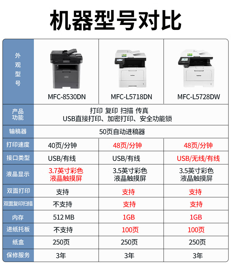 编号:BH005303 规格:黑白激光一体机 | 品牌:兄弟