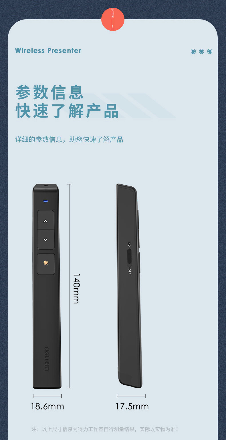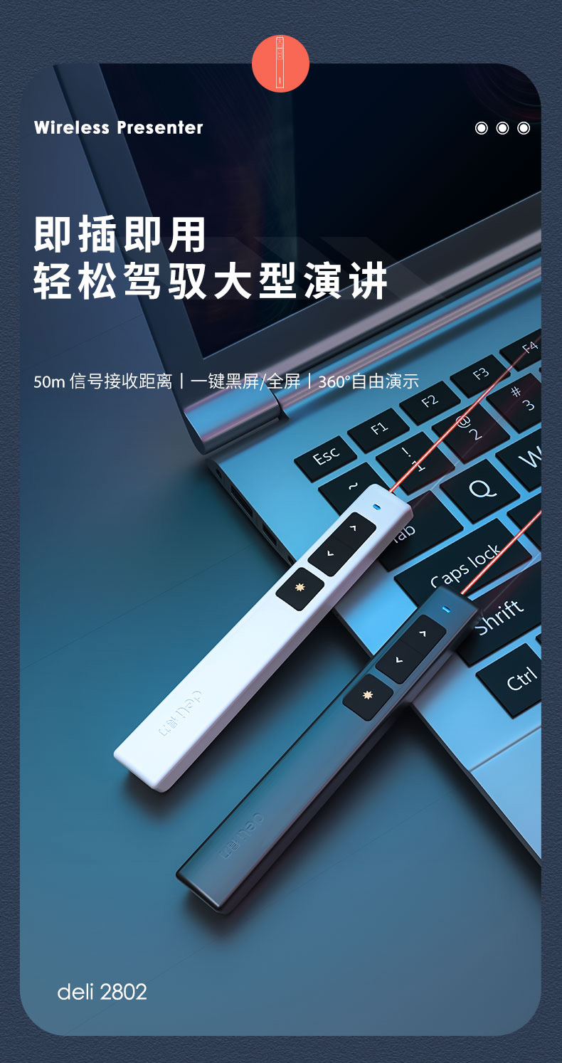 得力翻页笔2802多功能激光笔50米办公演讲课件换页
