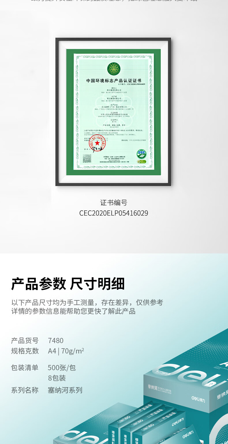 编号:BH005352 规格:A4复印纸得力塞纳河 | 品牌:得力